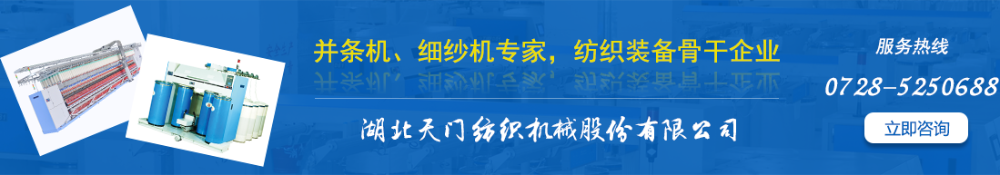湖北天門紡織機械股份有限公司發軔于1954年,自上世紀80年代初被原紡織工業部指定為棉紡并條機專業生產廠家,一直專注實業,深耕紡織裝備,底蘊深厚,源遠流長。現為中國紡織機械協會副會長單位、全國紡織機械與附件標準化技術委員會委員單位和棉紡并條機行業標準制定牽頭單位。